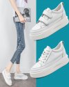 Size:4.5-8 Women Leisure Breathable Leather Upper Platform Sneakers Shoes